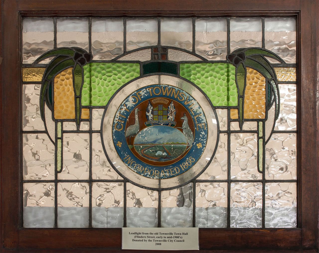 The original Townsville City Council leadlight Window which was displayed in the old Council Chambers in Flinders Street.